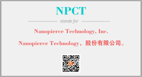 上述内容是“Nanopierce Technology, Inc.”作为“NPCT”的缩写,解释为“Nanopierce Technology,股份有限公司。”时的信息,以及英文缩略词NPCT所代表的英文单词,其对应的中文拼音、详细解释以及在英文中的流行度和相关分类、应用领域及应用示例等。