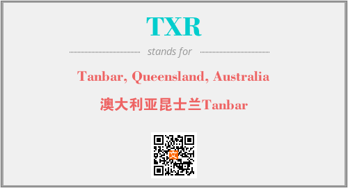 上述内容是“Tanbar, Queensland, Australia”作为“TXR”的缩写,解释为“澳大利亚昆士兰Tanbar”时的信息,以及英文缩略词TXR所代表的英文单词,其对应的中文拼音、详细解释以及在英文中的流行度和相关分类、应用领域及应用示例等。