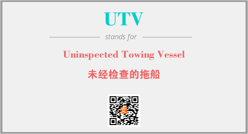 英文缩略词“UTV”经常作为“Uninspected Towing Vessel”的英文缩写来使用,中文表示:“未经检查的拖船”。本文将详细介绍英文缩写词UTV所代表英文单词,其对应的中文拼音、详细解释以及在英语中的流行度。此外,还有关于缩略词UTV的分类、应用领域及相关应用示例等。