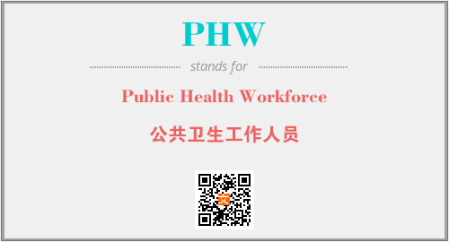 英文缩略词“PHW”经常作为“Public Health Workforce”的英文缩写来使用,中文表示:“公共卫生工作人员”。本文将详细介绍英文缩写词PHW所代表英文单词,其对应的中文拼音、详细解释以及在英语中的流行度。此外,还有关于缩略词PHW的分类、应用领域及相关应用示例等。