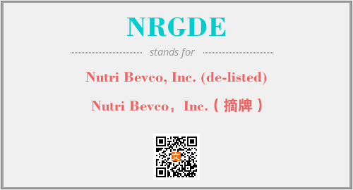 以上为Nutri Bevco, Inc. (de-listed)英文缩略词NRGDE的中文解释,以及该英文缩写在英语的流行度、分类和应用领域方面的信息。