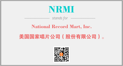 上述内容是“National Record Mart, Inc.”作为“NRMI”的缩写,解释为“美国国家唱片公司(股份有限公司)。”时的信息,以及英文缩略词NRMI所代表的英文单词,其对应的中文拼音、详细解释以及在英文中的流行度和相关分类、应用领域及应用示例等。