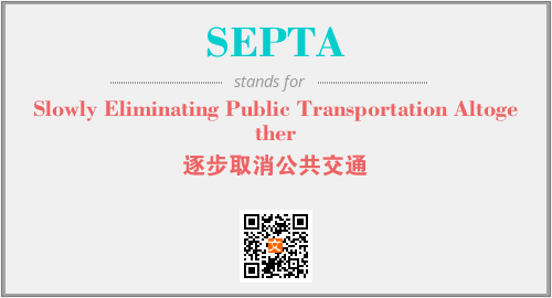 以上为Slowly Eliminating Public Transportation Altogether英文缩略词SEPTA的中文解释,以及该英文缩写在英语的流行度、分类和应用领域方面的信息。