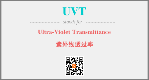 英文缩略词“UVT”经常作为“Ultra-Violet Transmittance”的英文缩写来使用,中文表示:“紫外线透过率”。本文将详细介绍英文缩写词UVT所代表英文单词,其对应的中文拼音、详细解释以及在英语中的流行度。此外,还有关于缩略词UVT的分类、应用领域及相关应用示例等。