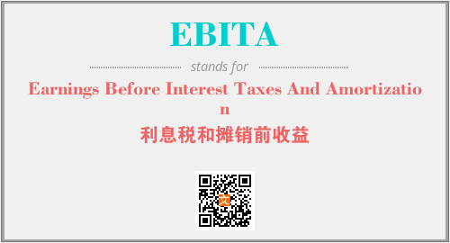 上述内容是“Earnings Before Interest Taxes And Amortization”作为“EBITA”的缩写,解释为“利息税和摊销前收益”时的信息,以及英文缩略词EBITA所代表的英文单词,其对应的中文拼音、详细解释以及在英文中的流行度和相关分类、应用领域及应用示例等。