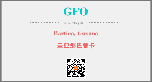 上述内容是“Bartica, Guyana”作为“GFO”的缩写,解释为“圭亚那巴蒂卡”时的信息,以及英文缩略词GFO所代表的英文单词,其对应的中文拼音、详细解释以及在英文中的流行度和相关分类、应用领域及应用示例等。