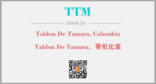 英文缩略词“TTM”经常作为“Tablon De Tamara, Colombia”的英文缩写来使用,中文表示:“Tablon De Tamara,哥伦比亚”。本文将详细介绍英文缩写词TTM所代表英文单词,其对应的中文拼音、详细解释以及在英语中的流行度。此外,还有关于缩略词TTM的分类、应用领域及相关应用示例等。