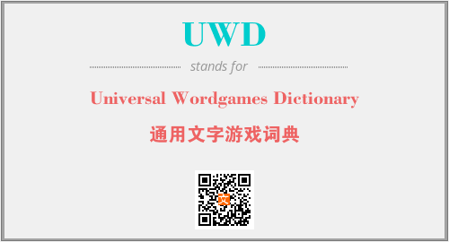 英文缩略词“UWD”经常作为“Universal Wordgames Dictionary”的英文缩写来使用,中文表示:“通用文字游戏词典”。本文将详细介绍英文缩写词UWD所代表英文单词,其对应的中文拼音、详细解释以及在英语中的流行度。此外,还有关于缩略词UWD的分类、应用领域及相关应用示例等。