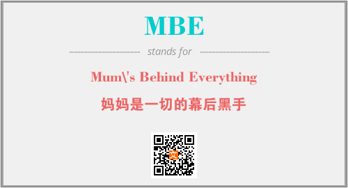 以上为Mum\'s Behind Everything英文缩略词MBE的中文解释,以及该英文缩写在英语的流行度、分类和应用领域方面的信息。