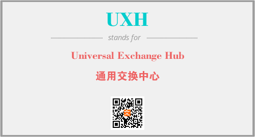 英文缩略词“UXH”经常作为“Universal Exchange Hub”的英文缩写来使用,中文表示:“通用交换中心”。本文将详细介绍英文缩写词UXH所代表英文单词,其对应的中文拼音、详细解释以及在英语中的流行度。此外,还有关于缩略词UXH的分类、应用领域及相关应用示例等。