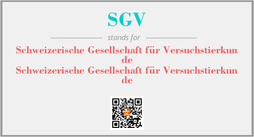 上述内容是“Schweizerische Gesellschaft für Versuchstierkunde”作为“SGV”的缩写,解释为“Schweizerische Gesellschaft für Versuchstierkunde”时的信息,以及英文缩略词SGV所代表的英文单词,其对应的中文拼音、详细解释以及在英文中的流行度和相关分类、应用领域及应用示例等。