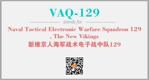 上述内容是“Naval Tactical Electronic Warfare Squadron 129, The New Vikings”作为“VAQ-129”的缩写,解释为“新维京人海军战术电子战中队129”时的信息,以及英文缩略词VAQ-129所代表的英文单词,其对应的中文拼音、详细解释以及在英文中的流行度和相关分类、应用领域及应用示例等。