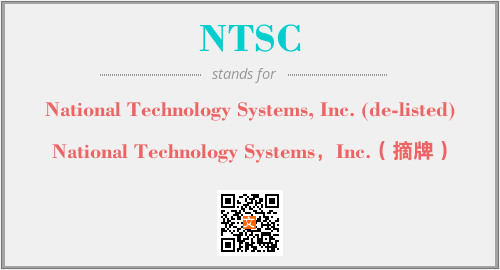 上述内容是“National Technology Systems, Inc. (de-listed)”作为“NTSC”的缩写,解释为“National Technology Systems,Inc.(摘牌)”时的信息,以及英文缩略词NTSC所代表的英文单词,其对应的中文拼音、详细解释以及在英文中的流行度和相关分类、应用领域及应用示例等。