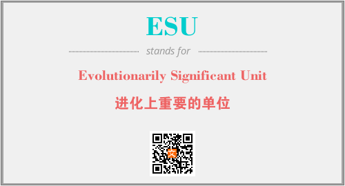 英文缩略词“ESU”经常作为“Evolutionarily Significant Unit”的英文缩写来使用,中文表示:“进化上重要的单位”。本文将详细介绍英文缩写词ESU所代表英文单词,其对应的中文拼音、详细解释以及在英语中的流行度。此外,还有关于缩略词ESU的分类、应用领域及相关应用示例等。