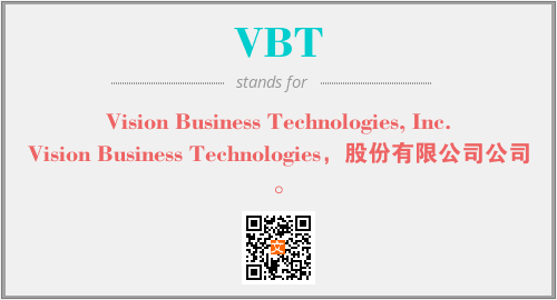 上述内容是“Vision Business Technologies, Inc.”作为“VBT”的缩写,解释为“Vision Business Technologies,股份有限公司公司。”时的信息,以及英文缩略词VBT所代表的英文单词,其对应的中文拼音、详细解释以及在英文中的流行度和相关分类、应用领域及应用示例等。