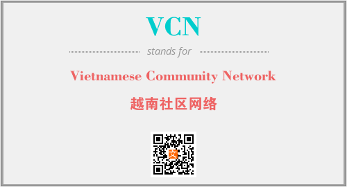 英文缩略词“VCN”经常作为“Vietnamese Community Network”的英文缩写来使用,中文表示:“越南社区网络”。本文将详细介绍英文缩写词VCN所代表英文单词,其对应的中文拼音、详细解释以及在英语中的流行度。此外,还有关于缩略词VCN的分类、应用领域及相关应用示例等。