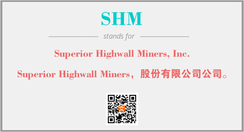 上述内容是“Superior Highwall Miners, Inc.”作为“SHM”的缩写,解释为“Superior Highwall Miners,股份有限公司公司。”时的信息,以及英文缩略词SHM所代表的英文单词,其对应的中文拼音、详细解释以及在英文中的流行度和相关分类、应用领域及应用示例等。