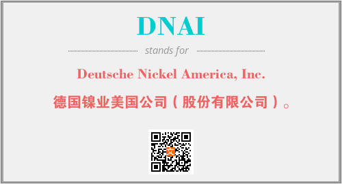 上述内容是“Deutsche Nickel America, Inc.”作为“DNAI”的缩写,解释为“德国镍业美国公司(股份有限公司)。”时的信息,以及英文缩略词DNAI所代表的英文单词,其对应的中文拼音、详细解释以及在英文中的流行度和相关分类、应用领域及应用示例等。