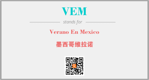 英文缩略词“VEM”经常作为“Verano En Mexico”的英文缩写来使用,中文表示:“墨西哥维拉诺”。本文将详细介绍英文缩写词VEM所代表英文单词,其对应的中文拼音、详细解释以及在英语中的流行度。此外,还有关于缩略词VEM的分类、应用领域及相关应用示例等。
