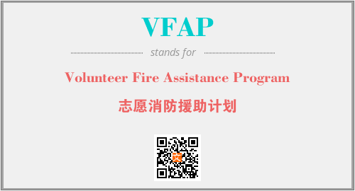 上述内容是“Volunteer Fire Assistance Program”作为“VFAP”的缩写,解释为“志愿消防援助计划”时的信息,以及英文缩略词VFAP所代表的英文单词,其对应的中文拼音、详细解释以及在英文中的流行度和相关分类、应用领域及应用示例等。