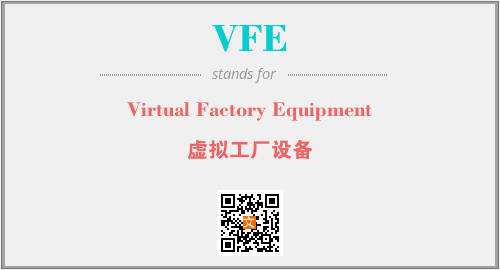 上述内容是“Virtual Factory Equipment”作为“VFE”的缩写,解释为“虚拟工厂设备”时的信息,以及英文缩略词VFE所代表的英文单词,其对应的中文拼音、详细解释以及在英文中的流行度和相关分类、应用领域及应用示例等。