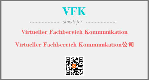 上述内容是“Virtueller Fachbereich Kommunikation”作为“VFK”的缩写,解释为“Virtueller Fachbereich Kommunikation公司”时的信息,以及英文缩略词VFK所代表的英文单词,其对应的中文拼音、详细解释以及在英文中的流行度和相关分类、应用领域及应用示例等。
