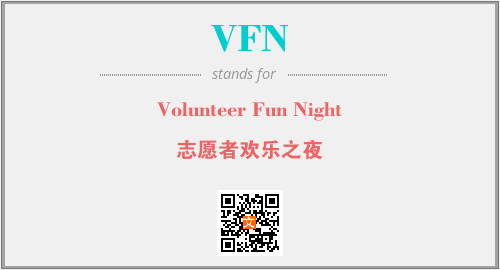 英文缩略词“VFN”经常作为“Volunteer Fun Night”的英文缩写来使用,中文表示:“志愿者欢乐之夜”。本文将详细介绍英文缩写词VFN所代表英文单词,其对应的中文拼音、详细解释以及在英语中的流行度。此外,还有关于缩略词VFN的分类、应用领域及相关应用示例等。