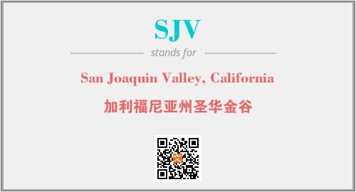 上述内容是“San Joaquin Valley, California”作为“SJV”的缩写,解释为“加利福尼亚州圣华金谷”时的信息,以及英文缩略词SJV所代表的英文单词,其对应的中文拼音、详细解释以及在英文中的流行度和相关分类、应用领域及应用示例等。
