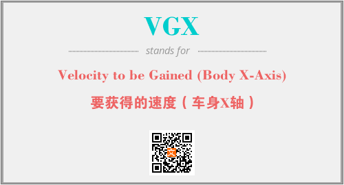 上述内容是“Velocity to be Gained (Body X-Axis)”作为“VGX”的缩写,解释为“要获得的速度(车身X轴)”时的信息,以及英文缩略词VGX所代表的英文单词,其对应的中文拼音、详细解释以及在英文中的流行度和相关分类、应用领域及应用示例等。