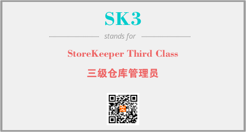 上述内容是“StoreKeeper Third Class”作为“SK3”的缩写,解释为“三级仓库管理员”时的信息,以及英文缩略词SK3所代表的英文单词,其对应的中文拼音、详细解释以及在英文中的流行度和相关分类、应用领域及应用示例等。