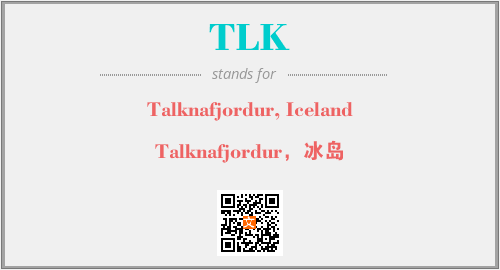 英文缩略词“TLK”经常作为“Talknafjordur, Iceland”的英文缩写来使用,中文表示:“Talknafjordur,冰岛”。本文将详细介绍英文缩写词TLK所代表英文单词,其对应的中文拼音、详细解释以及在英语中的流行度。此外,还有关于缩略词TLK的分类、应用领域及相关应用示例等。
