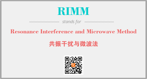 上述内容是“Resonance Interference and Microwave Method”作为“RIMM”的缩写,解释为“共振干扰与微波法”时的信息,以及英文缩略词RIMM所代表的英文单词,其对应的中文拼音、详细解释以及在英文中的流行度和相关分类、应用领域及应用示例等。