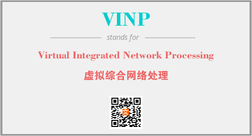 英文缩略词“VINP”经常作为“Virtual Integrated Network Processing”的英文缩写来使用,中文表示:“虚拟综合网络处理”。本文将详细介绍英文缩写词VINP所代表英文单词,其对应的中文拼音、详细解释以及在英语中的流行度。此外,还有关于缩略词VINP的分类、应用领域及相关应用示例等。