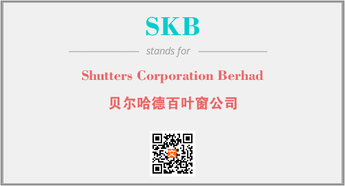 英文缩略词“SKB”经常作为“Shutters Corporation Berhad”的英文缩写来使用,中文表示:“贝尔哈德百叶窗公司”。本文将详细介绍英文缩写词SKB所代表英文单词,其对应的中文拼音、详细解释以及在英语中的流行度。此外,还有关于缩略词SKB的分类、应用领域及相关应用示例等。