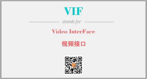 上述内容是“Video InterFace”作为“VIF”的缩写,解释为“视频接口”时的信息,以及英文缩略词VIF所代表的英文单词,其对应的中文拼音、详细解释以及在英文中的流行度和相关分类、应用领域及应用示例等。