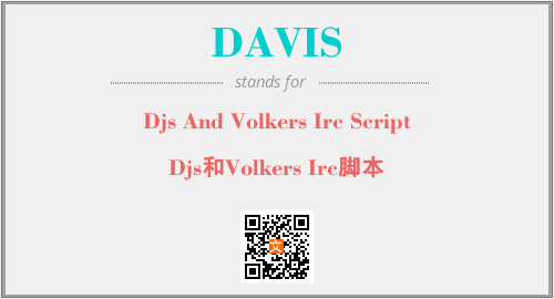 上述内容是“Djs And Volkers Irc Script”作为“DAVIS”的缩写,解释为“Djs和Volkers Irc脚本”时的信息,以及英文缩略词DAVIS所代表的英文单词,其对应的中文拼音、详细解释以及在英文中的流行度和相关分类、应用领域及应用示例等。