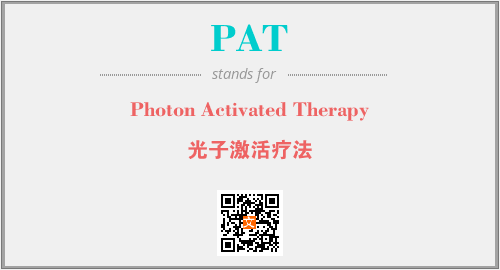 上述内容是“Photon Activated Therapy”作为“PAT”的缩写,解释为“光子激活疗法”时的信息,以及英文缩略词PAT所代表的英文单词,其对应的中文拼音、详细解释以及在英文中的流行度和相关分类、应用领域及应用示例等。
