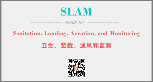 上述内容是“Sanitation, Loading, Aeration, and Monitoring”作为“SLAM”的缩写,解释为“卫生、装载、通风和监测”时的信息,以及英文缩略词SLAM所代表的英文单词,其对应的中文拼音、详细解释以及在英文中的流行度和相关分类、应用领域及应用示例等。