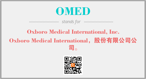 上述内容是“Oxboro Medical International, Inc.”作为“OMED”的缩写,解释为“Oxboro Medical International,股份有限公司公司。”时的信息,以及英文缩略词OMED所代表的英文单词,其对应的中文拼音、详细解释以及在英文中的流行度和相关分类、应用领域及应用示例等。