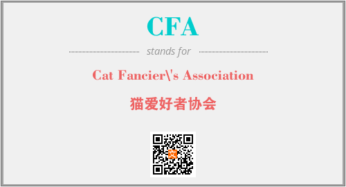 英文缩略词“CFA”经常作为“Cat Fancier\'s Association”的英文缩写来使用,中文表示:“猫爱好者协会”。本文将详细介绍英文缩写词CFA所代表英文单词,其对应的中文拼音、详细解释以及在英语中的流行度。此外,还有关于缩略词CFA的分类、应用领域及相关应用示例等。