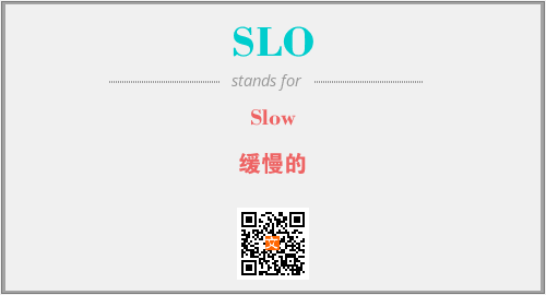 上述内容是“Slow”作为“SLO”的缩写,解释为“缓慢的”时的信息,以及英文缩略词SLO所代表的英文单词,其对应的中文拼音、详细解释以及在英文中的流行度和相关分类、应用领域及应用示例等。