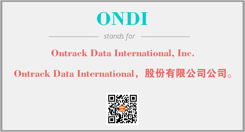 上述内容是“Ontrack Data International, Inc.”作为“ONDI”的缩写,解释为“Ontrack Data International,股份有限公司公司。”时的信息,以及英文缩略词ONDI所代表的英文单词,其对应的中文拼音、详细解释以及在英文中的流行度和相关分类、应用领域及应用示例等。