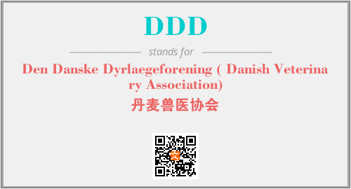 英文缩略词“DDD”经常作为“Den Danske Dyrlaegeforening ( Danish Veterinary Association)”的英文缩写来使用,中文表示:“丹麦兽医协会”。本文将详细介绍英文缩写词DDD所代表英文单词,其对应的中文拼音、详细解释以及在英语中的流行度。此外,还有关于缩略词DDD的分类、应用领域及相关应用示例等。