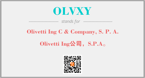 上述内容是“Olivetti Ing C & Company, S. P. A.”作为“OLVXY”的缩写,解释为“Olivetti Ing公司,S.P.A。”时的信息,以及英文缩略词OLVXY所代表的英文单词,其对应的中文拼音、详细解释以及在英文中的流行度和相关分类、应用领域及应用示例等。