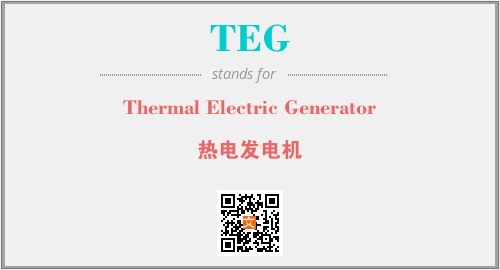 上述内容是“Thermal Electric Generator”作为“TEG”的缩写,解释为“热电发电机”时的信息,以及英文缩略词TEG所代表的英文单词,其对应的中文拼音、详细解释以及在英文中的流行度和相关分类、应用领域及应用示例等。