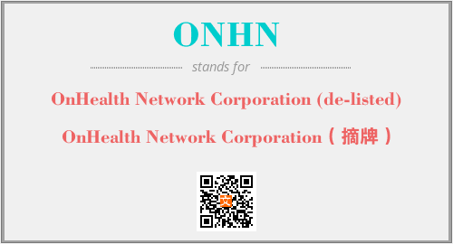 上述内容是“OnHealth Network Corporation (de-listed)”作为“ONHN”的缩写,解释为“OnHealth Network Corporation(摘牌)”时的信息,以及英文缩略词ONHN所代表的英文单词,其对应的中文拼音、详细解释以及在英文中的流行度和相关分类、应用领域及应用示例等。