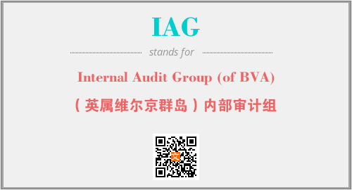 英文缩略词“IAG”经常作为“Internal Audit Group (of BVA)”的英文缩写来使用,中文表示:“(英属维尔京群岛)内部审计组”。本文将详细介绍英文缩写词IAG所代表英文单词,其对应的中文拼音、详细解释以及在英语中的流行度。此外,还有关于缩略词IAG的分类、应用领域及相关应用示例等。