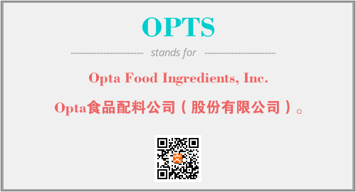 上述内容是“Opta Food Ingredients, Inc.”作为“OPTS”的缩写,解释为“Opta食品配料公司(股份有限公司)。”时的信息,以及英文缩略词OPTS所代表的英文单词,其对应的中文拼音、详细解释以及在英文中的流行度和相关分类、应用领域及应用示例等。