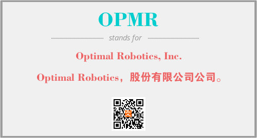 上述内容是“Optimal Robotics, Inc.”作为“OPMR”的缩写,解释为“Optimal Robotics,股份有限公司公司。”时的信息,以及英文缩略词OPMR所代表的英文单词,其对应的中文拼音、详细解释以及在英文中的流行度和相关分类、应用领域及应用示例等。