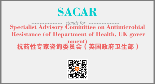 以上为Specialist Advisory Committee on Antimicrobial Resistance (of Department of Health, UK government)英文缩略词SACAR的中文解释,以及该英文缩写在英语的流行度、分类和应用领域方面的信息。